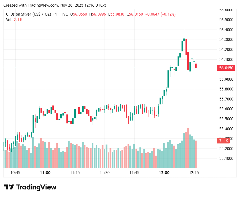 העלייה מגיעה על רקע מהלכי מחירים לא יציבים ונזילות דלילה בשוק הכסף, כאשר ה-Comex מתאוששת מאחת ההפסקות הגרועות ביותר שלה מזה שנים. המסחר בחוזים עתידיים הופסק במשך למעלה מ-11 שעות לפני חידושו בשעות הבוקר של ארה"ב.