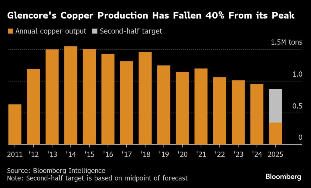 בתקופה בה הכורים ברחבי העולם ממהרים לייצר יותר נחושת, ייצור הנחושת של גלנקור צפוי לרדת זו שנה רביעית ברציפות. זה נאלץ לשקול לסגור או למכור מתכתים נאבקים, וגלנקור עצמה לא דיווחה על רווח נקי מאז המחצית הראשונה של 2023.